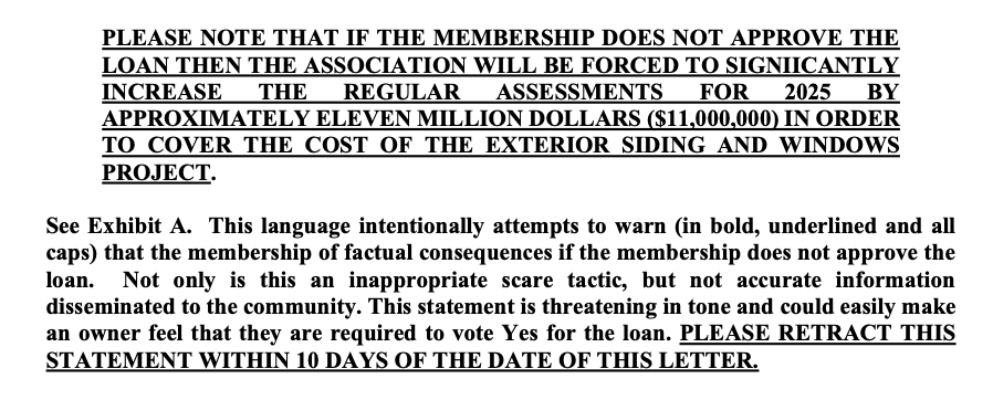 Threats and coercion by management to force homeowners to approve $11 million loan from Banco Popular: